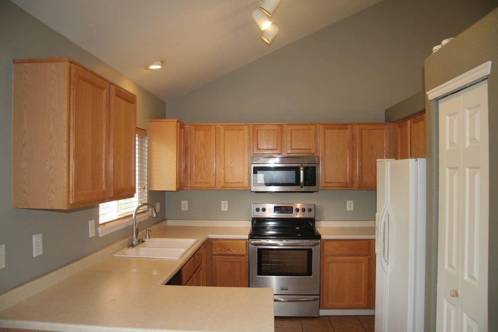 Beautiful home with open floor plan! The living room has vaulted ceilings, as does the dining room and kitchen! The spacious kitchen includes a pantry, great counter space, stainless steel stove, microwave, and dishwasher, oak cabinets and the kitchen is open to the family room! The family room has 9' celings, media shelves, and access to the back yard. Beautiful tile flooring is on the main and lower levels! 3 bedrooms upstairs and the master has a full bath with double sinks and a walk-in closet! The oversized 2-car garage provides great room for bikes and storage in addition to your cars! The unfinished basement provides additional storage room! Central A/C! Sprinkler system! 5 minute (2 blocks) walk to the Woodglen park with soccer fields, playground, sand volleyball courts, basketball, and a pavilion!